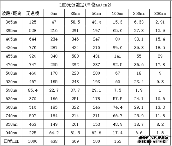 紫外可見大功率均勻LED數據表: