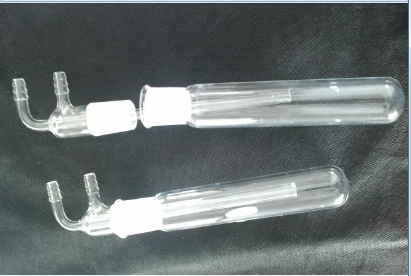 該類光化學反應器(光催化反應器)通常由石英玻璃或PYREX玻璃制成的冷阱和反應器組合使用。這種組合使用從照射方式劃分上通常稱為內照式,即輻照光由系統內部向外照射到反應容器和反應物質。其中,冷阱主要作用為降低燈管溫度和濾除大部分紅外熱量。石英冷阱主要為透射更多的紫外能量,可應用紫外和可見區的催化實驗。冷阱的外部是反應器,反應器通常是由PYREX玻璃制成,并有多種形式,我公司除提供標準產品外,可接受特種產品的定制。