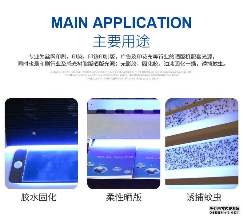 用途:無影膠,UV膠水,油墨的固化,冷光源曬版,光化作用,昆蟲誘等。