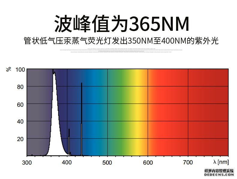 紫外線固化燈管是有反射層的UV-A熒光燈,它屬于R型反射燈系,在機械,電氣和工作狀態(tài)方面都可與別的燈互換。TL/10系列發(fā)射紫外線為UV-A波段。范圍為350nm-400nm,其峰值波長為365nm。其中UV-B/UV-A的比值為少于0.1%(UV-B:280nm-315nm)。R型(反射型)有200度的內(nèi)部反射層。內(nèi)部反射層提高了燈的效率,并且特別適合于輻射距離和燈布置較密的狀況。使用TL/10系列,燈的安裝密度可以提高(燈的中心之間的距離為30mm),這使得輻射強度增大,照射效率提高。